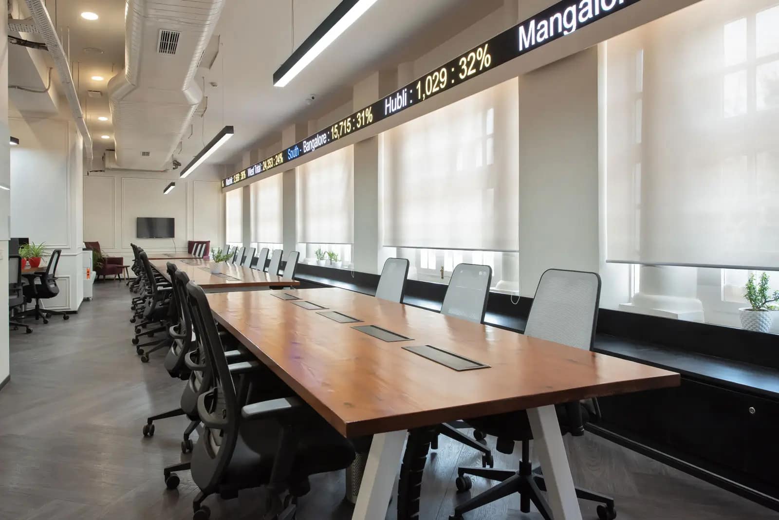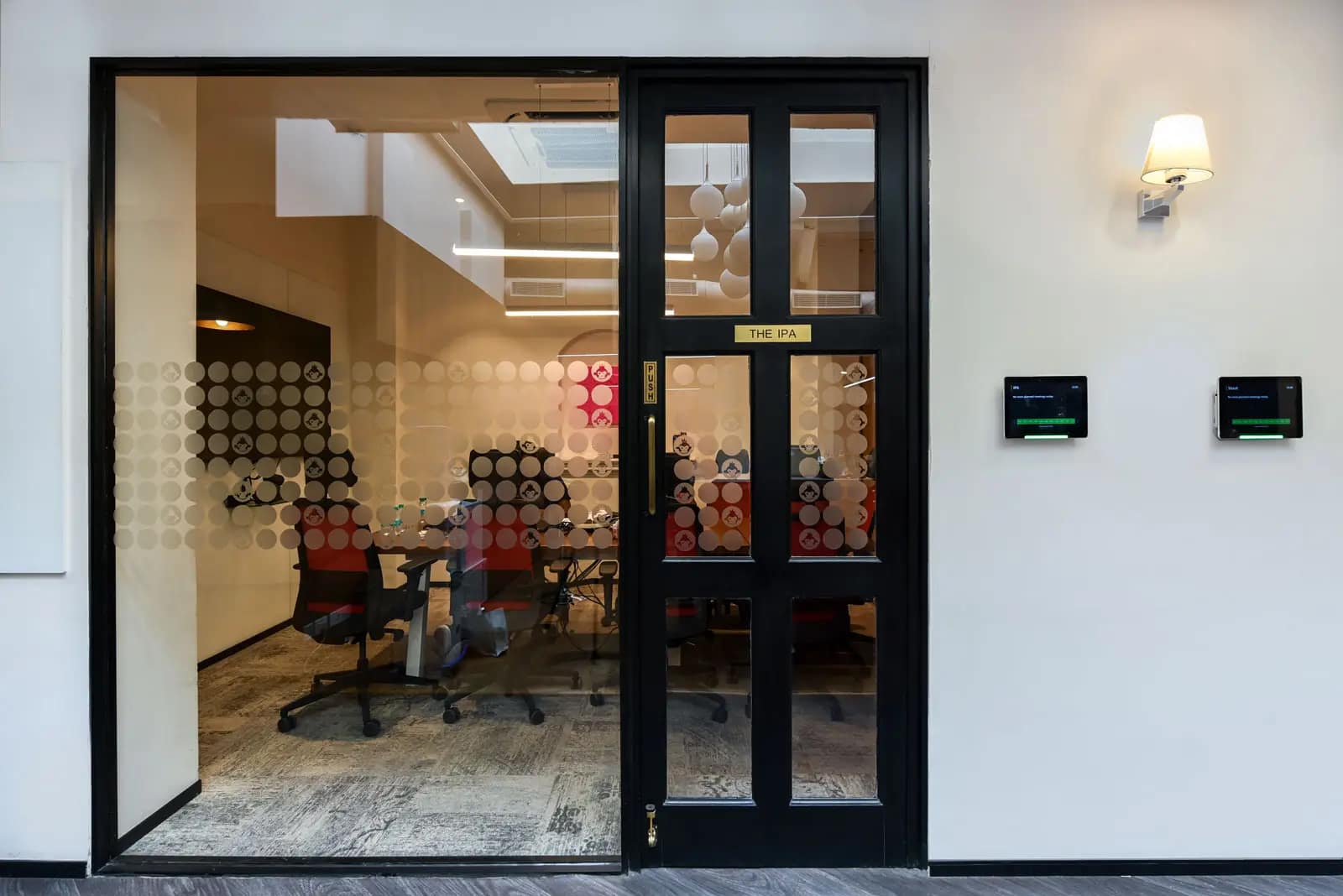 Unique design elements, like the stock ticker stretching across the main workspace, added a creative edge, serving as both a messaging surface and a visual feature. Customized furniture and bespoke design details further elevated the space’s uniqueness. The breakout area, styled as a beer bar and thoughtfully placed under a skylight linking the two floors, became the centerpiece of the office. Flooded with natural light, it not only served as a central meeting point but also reinforced the brand’s playful and innovative identity.