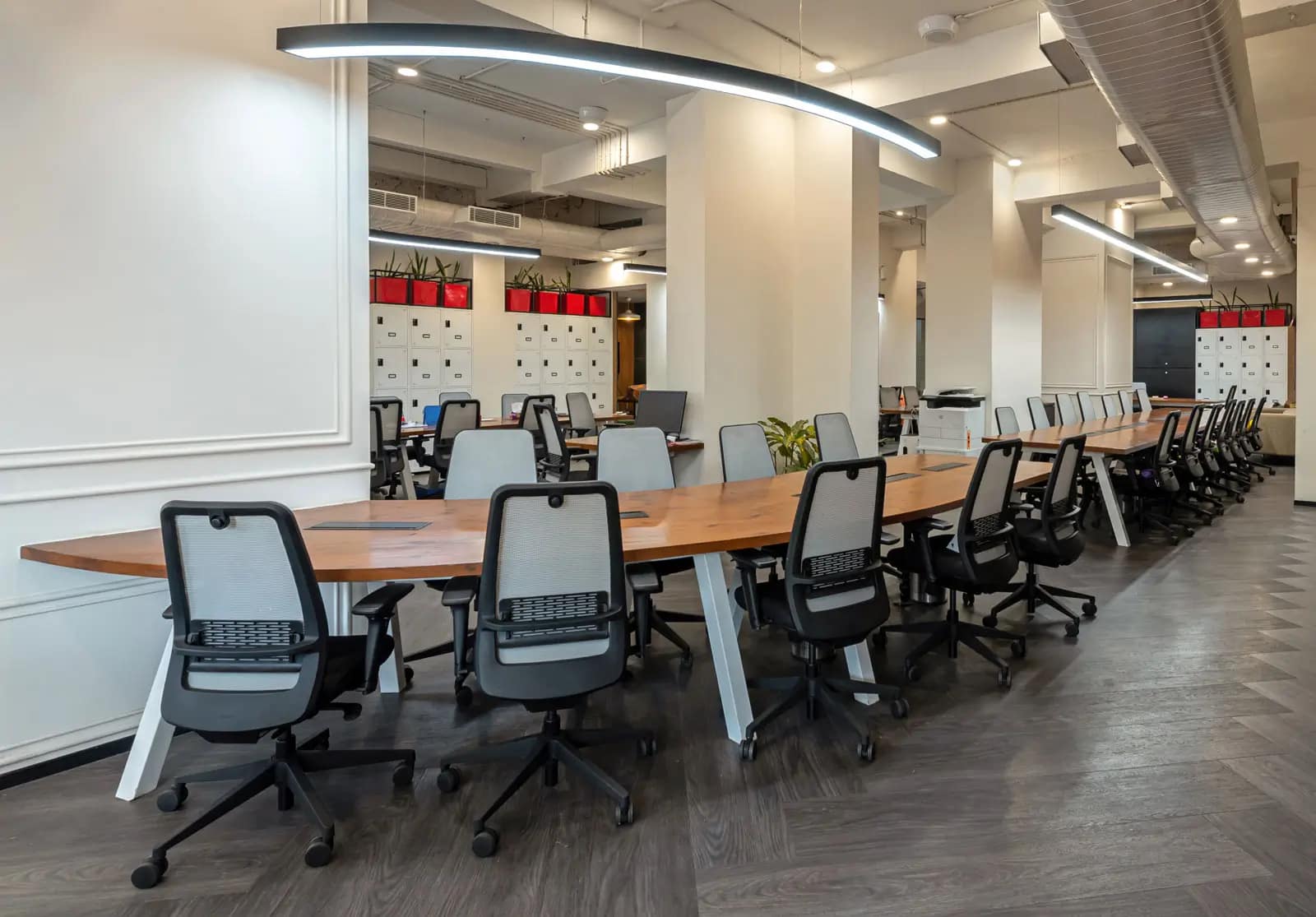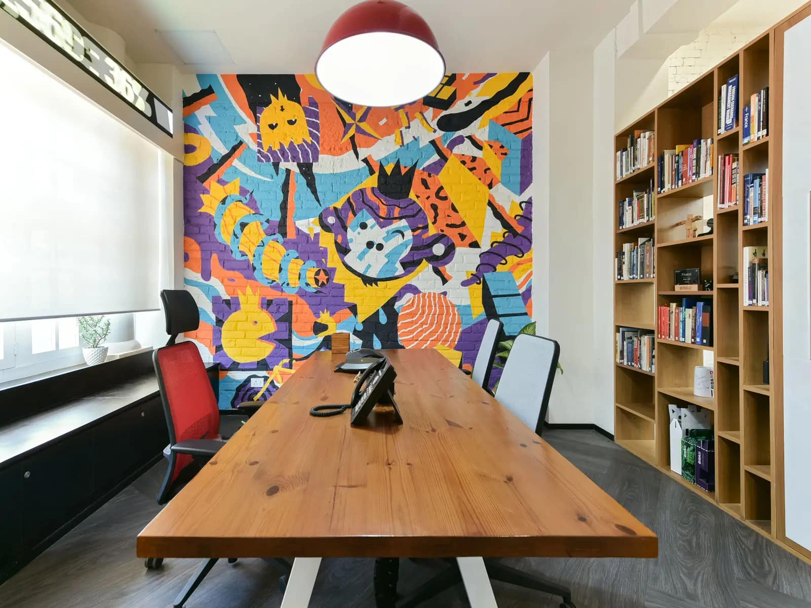 The resulting design masterfully blended heritage elements with contemporary finishes, creating a workspace that is both functional and visually captivating. The old architectural features, such as fireplaces, were preserved and paired with sleek, straight-line furniture and quirky art pieces, achieving a striking juxtaposition. The predominantly white color palette, accented with black and natural finishes, tied the design together, offering a clean yet dynamic aesthetic.